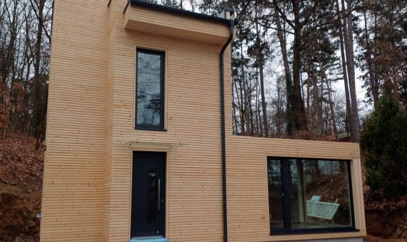 Dispozice domu je 2+kk na zastavěné ploše 55 m2.