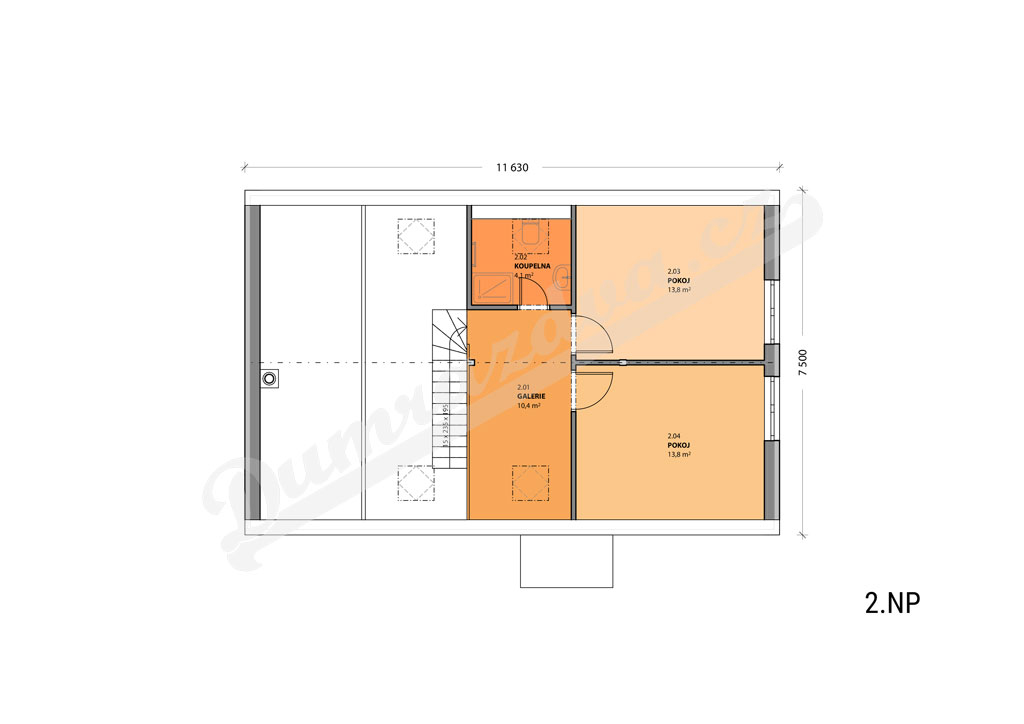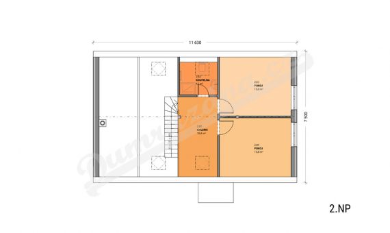 Patro – Galerie otevřená do obytného prostoru, 2 pokoje, koupelna