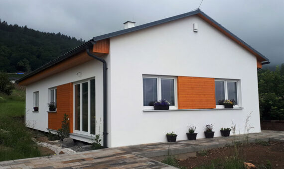 Dispozice domu je 4+kk na zastavěné ploše 97,6 m2.