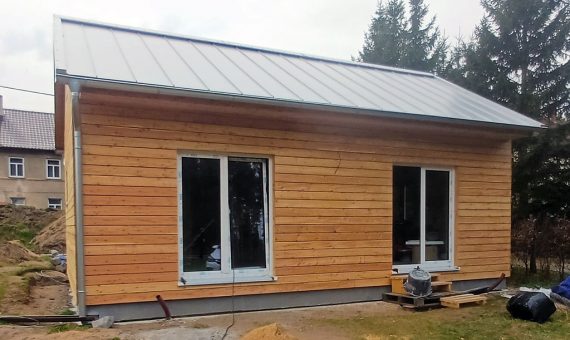 Dispozice domu je 2+kk na zastavěné ploše 49,7 m2.