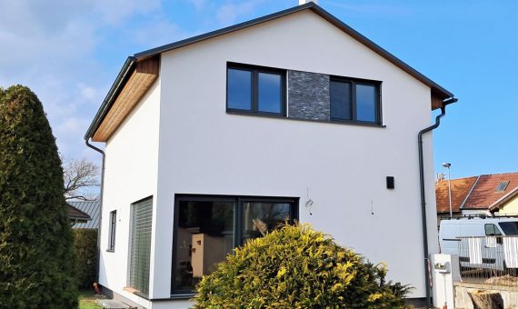 Dispozice domu je 4+kk na 104m2 + garáž 44m2.