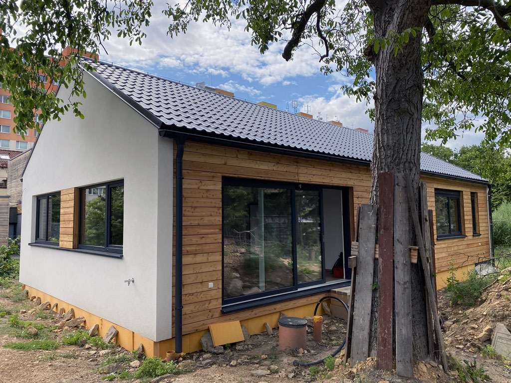 Bungalov 21 – Kamýk – 2025 Bungalov 21 – Kamýk – 2025 Dispozice domu je 4+kk na zastavěné ploše 119,6 m2. zpět